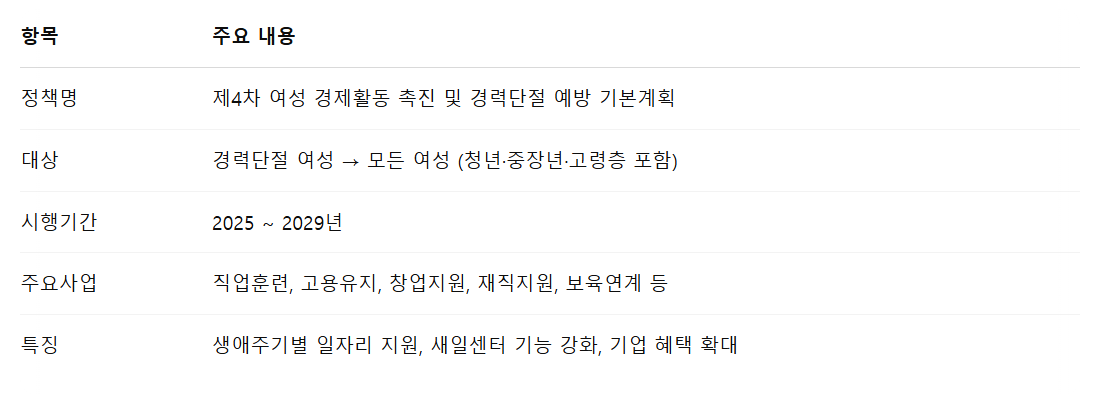 이는 정부가 발표한 ‘제4차 여성의 경제활동 촉진 및 경력단절 예방 기본계획’(2025~2029)에 따른 것으로,